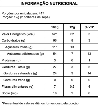 Polpa de coco ralado integral, açúcar, propilenoglicol, conservante metabissulfito de sódio (INS 223).